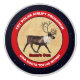 A reindeer (caribou) appears within a red ring. White text reading, "1ST POLAR AIRLIFT SQUADRON" and the squadron motto, "UNA NOCTA TOTIUS MUNDI" (Latin: The entire world in one night) appears on the ring. Text reading, "Santa's Own" appears below the Reindeer.
