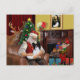 Santa at home with his Papillon, relaxing in front of a cosy fire before the big night. Notice Mona Lisa over the mantle holding the same dog.