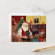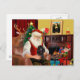 Santa at home with his black Toy Poodle, relaxing in front of the cozy fire before the big day. Notice Mona Lisa over the mantle holding the same dog.
