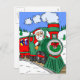 Cute illustration of Santa as the engineer of his Christmas train. Bright fun colours.