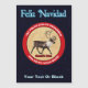 A reindeer (caribou) appears within a red ring. White text reading, "1ST POLAR AIRLIFT SQUADRON" and the squadron motto, "UNA NOCTA TOTIUS MUNDI" (Latin: The entire world in one night) appears on the ring. Text reading, "Santa's Own" appears below the Reindeer. Spanish text reading "Feliz Navidad" also appears in glowing blue and white. Everything is superimposed on a starry background.