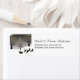 Winter wonderland with silhouettes of Santa and his sleigh being pulled by reindeers into the twilight sky and trees catching the moon light. Personalised, simple and elegant Christmas return address labels.