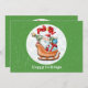 Holiday fun starts with Santa Claus and his sleigh. This card has a green background with white flecks. In the centre there's a globe-like circle that has an image of Santa and his sleigh. On the back of the card there is a text box that allows you to add your holiday message. If you prefer, you can delete the text and write your message.