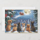 Santa's Sleigh Over Moonlit Winter Forest Holiday Card