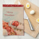 Here comes Santa Claus through snow and blizzard on Christmas Eve on these kitchen towels.