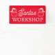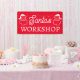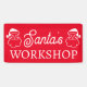 Santa's Workshop custom red banner. Trendy Holiday decorations for home or business.