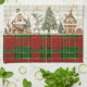 Santa's Workshop Elves Red Green Christmas Tartan Tea Towel