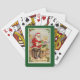 Santa is painting a toy house or doll house. Image of a Vintage Christmas Card on a very dark lime green background.