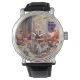 A beautiful vintage watch featuring Santa with his elves in the workshop.