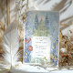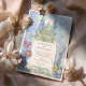 Announce your destination wedding with this breathtakingly artistic invitation, featuring a stunning watercolor illustration of the Cathedral of Santiago de Compostela in Spain. The design is inspired by the elegant and organic forms of the Art Nouveau movement, with intricate, swirling floral vines framing the central image and your personalised text. The rich colour palette of blues, greens, and soft reds creates a romantic and timeless feel, perfect for a historic European wedding. This unique invitation is ideal for couples who appreciate art, history, and Old World charm, setting a truly memorable tone for your special day.