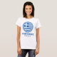 Santorini, Greece women's white T-Shirt featuring the national flag of Greece inside a Greek blue Aztec circle and the name of the island written in Greek style. This T-Shirt is ideal for you to wear while you are enjoying your vacation on the beautiful Greek island of Santorini. You can also give this as a gift from Greece to anyone who will like this T-Shirt.