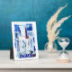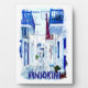 Beautiful Tabletop Plaque with Easel view over a town on the greek island of Santorini Greece with its amazing arachitecture. Elegant home decor gift and souvenir for your desk.
