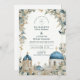 Santorini Blue Domes Botanical Wedding Invitation