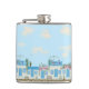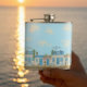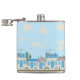 Santorini Blue White Greek Village Coastal Art Hip Flask