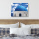 Canvas print with Santorini, Greece photo with blue sky and white clouds.