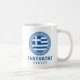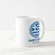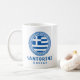 Santorini, Greece coffee mug featuring the national flag of Greece inside a Greek blue Aztec circle. This mug is perfect for you to enjoy drinking your coffee while you are on vacation in Santorini, Greece or if you are proud to be from Santorini.