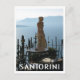 Goddess statue in Santorini, Greece looking out towards the ocean and mountains from a hillside cafe.