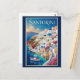 Santorini Greece Illustration Travel Art Vintage Postcard