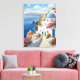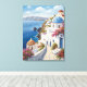 Beautiful oil painting of iconic Santorini white buildings with blue domes overlooking Aegean Sea. Stunning Mediterranean travel art perfect for creating European elegance and wanderlust-inspired spaces.