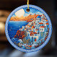 Santorini Greece Painting | Travel Art Ceramic Tree Decoration