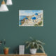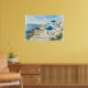 Beautiful watercolor poster featuring the iconic blue-domed churches of Santorini, Greece, Perfect for offices, hotels, travel agencies, or personalized branding with your company logo, Elegant Mediterranean art adds a touch of coastal sophistication, Ideal for home or business decor, A timeless design capturing the beauty of Greek island architecture