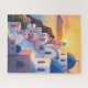 Santorini, Greece | Watercolor Coastline Sunset Jigsaw Puzzle