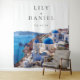 This elegant watercolor Santorini Greece wedding photo booth backdrop can be personalised with your information in modern typography. Designed by Thisisnotme©