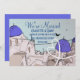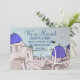 Ideal invitation for anyone who married in The Greek island of Santorini and wants to celebrate with friends and family back home with an illustration of the typical Greek blue and white buildings and pretty white beads in the shape of a heart.