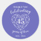 Sapphire celebrating 45 years of love anniversary stickers. Simple outline heart stone effect line art graphics blue and white 45th Sapphire Wedding Anniversary round stickers. Customise with your own forty fifth wedding anniversary party details. 45th Anniversary is traditionally associated with sapphire and the heart symbolises love. Graphics and design by Sarah Trett for www.mylittleedenweddings.com on zazzle.