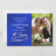 Celebrate a sapphire wedding anniversary (5th 45th or 65th) with this elegant sapphire blue and white photo invitation featuring a calligraphy script typography design # YEARS INTO FOREVER for their years married accented with interlocking linked hearts and 2 photos (one on each side--perhaps Then and Now photos for a memorable keepsake). Contact the designer via Zazzle Chat or makeitaboutyoustore@gmail.com if you'd like this design modified or in another colour, on another product or would like coordinating items.