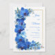 Invite your guests with a breath of fresh, vibrant elegance. This design features a stunning L-shaped arrangement of orchids in a range of blues—from deep sapphire and royal cobalt to soft, luminous sky blue. Each bloom is rendered with intricate botanical detail, featuring fine white veining and golden centers that pop against a clean, minimalist white background. A thin, elegant double gold frame surrounds the composition, adding a touch of metallic luxury to the natural floral freshness. This design is a premier choice for a formal evening gala, a luxury beachfront ceremony, or a sophisticated winter wedding held under a "Midnight Garden" or "Royal Blue and Gold" theme. Its striking color palette and regal metallic accents make it an ideal match for upscale venues like a historic grand hotel, a modern city penthouse, or a candlelit manor. This suite is perfect for couples who want to make a bold, artistic statement while maintaining a sense of refined elegance and timeless beauty.