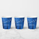 Loose abstract painted art sapphire dark blue wedding paper cups. A simple modern contemporary art design ideal for weddings or anniversary events in pretty shades of deep sapphire brushed to mid blue. © Original watercolor art and design by Sarah Trett for www.mylittleedenweddings.com