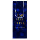 Elegant wine gift bag featuring the words "Pop Fizz Clink" in faux gold foil against a sapphire blue bokeh pattern background. Perfect for engagement parties, weddings, anniversaries or various other events.