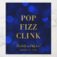 Elegant label featuring the words "Pop Fizz Clink" in faux gold foil against a sapphire blue bokeh lights pattern background. Perfect for engagement parties, weddings, anniversaries or various other events.