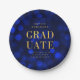 Sapphire Blue Bokeh Lights Faux Gold Graduate Paper Plate