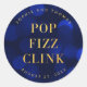 Elegant sticker featuring the words "Pop Fizz Clink" in faux gold foil against a sapphire blue bokeh lights pattern background. Perfect for engagement parties, weddings, anniversaries, birthdays or various other events.