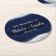 Sapphire Blue Rose Gold Geode Agate Slice Monogram Round Paper Coaster