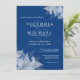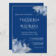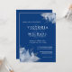 Abstract white flowers with wispy leaves and whimsical swirls border this beautiful wedding invitation set. Deep cobalt blue background makes it perfect for winter weddings -- or, simply change the background colour for any of the seasons, spring, summer, autumn, and fall. Elegant semi-formal vintage typography is sure to please the traditional bride, but a splash of trendy styling makes it contemporary enough for modern couples. Simple but stylish elegance at bargain discounts and affordable prices for frugal brides on a budget. Shown in Basic paper stock -- or upgrade to premium quality felt, linen, recycled, and metallic paper options. Customise it to change the font colours and styles. Please contact us if you would like this design modified to match your bridal party colour theme. This easy to use template can also be personalised for any special occasion such as bridal shower, engagement and marriage announcements. Please contact us for assistance if you need help to create your own unique one-of-a-kind invitations. CARD SIZE: 5.5 x 7.5 inches -- other sizes, colours, and paper styles available.