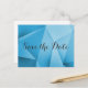 Sharp and modern Jewel Tones Wedding Save the Date Postcard featuring a blue funky geometric triangle background. This chic and simple design is a unique choice for announcing a modern wedding. Easy to customise with your wedding details. Click "Customise It" to find more personalisation options.