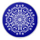 This white mandala sits on a bright, deep blue background. The colours are intelligent and introspective. Part of the Mola Mandala Collection.