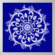 This white mandala sits on a bright, deep blue background. The colours are intelligent and introspective. Part of the Payon Mandala Collection.