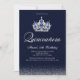 Saphire Quinceanera Invitations. Designed with sparkles, silver glitter, a silver crown with sapphire accents for a fabulous Quinceanera, 15th birthday. Made for special for teens, this silver glitter Quinceanera invitation will be a fabulous introduction to your special day. Additional coordinating Quinceanera party supplies are available at Metro-Events Zazzle shop and Metro-Event.com.