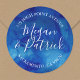 Custom circle wedding return address labels with an abstract blue watercolor background to coordinate with our Sapphire Tide collection. Personalise it with your names and return address or add your own custom text. Use the design tools to change the fonts and colours or upload your own photos to create a unique one of a kind design.