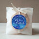 Custom circle wedding favour labels with an abstract blue watercolor background to coordinate with our Sapphire Tide collection. Personalise it with your names and wedding date or add your own custom text. Use the design tools to change the fonts and colours or upload your own photos to create a unique one of a kind design.