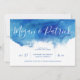 Affordable custom printed wedding invitations with an abstract blue watercolor background and modern hand-lettered style typography. Personalise it with your names and wedding invitation details. Use the design tools to change the text fonts and colours or add additional text and photos to create a unique one of a kind design. A stylish and fun invitation design, perfect for a destination wedding on the beach!