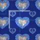 45th Sapphire Anniversary blue personalised photo fabric. Beautiful sapphires in hearts on royal blue with photo stone template sapphire Wedding Anniversary repeat patterned fabric. Customise with your own couples photo. The 45th Anniversary year is traditionally associated with Sapphires. Uniquely designed by Sarah Trett.