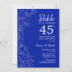 Sapphire White Floral Surprise 20th Wedding Anniversary Celebration Invitation. Minimalist modern royal blue design features botanical accents and typography script font. Simple floral invite card perfect for a stylish surprise anniversary party. Can be customised for any years of marriage. Printed Zazzle invitations or instant download digital printable template.