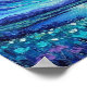 This dreamy poster features a blue landscape painting: swirling starry sky above a tranquil lake, distant mountains and a vibrant foreground meadow of glowing wildflowers. Finished in a oil acrylic paint print.