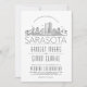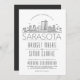 A unique wedding invitation for a marriage taking place in the beautiful city of Sarasota, Florida. This invitation features a stylised illustration of the city's unique skyline with its name underneath. This is followed by your wedding day information in a matching open-lined style. On the reverse side of the invitation is a deep grey colour to complement the look and feel. All individual elements of the invite card are unlocked so feel free to change or add any details necessary by using the customisation function. You can add a photo to the reverse side and add a black and white filter to it. Also, you can experiment with the many unique thicker paper types and cuts available. Matching RSVP cards, belly bands, tote bags, and more are available. Have fun being creative and making it your own!