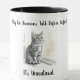 This mug features Miss Calwdia, the golden-eyed tabby with zero tolerance for morning chatter. Perched on a windowsill with her signature glare and coffee in paw, she delivers the ultimate truth: “Why do people talk before coffee? It seems unnatural.” Perfect for introverts, caffeine addicts, and anyone who needs a buffer before human interaction. Handwash.